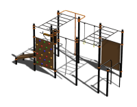 Масштабный, многофункциональный спортивный комплекс, который включает в себя много элементов для выполнения разных упражнений на все группы мышц. Брусья, турники, кольца, скамья для упражнений на пресс, стенка для лазанья и другие элементы позволят эффективно провести тренировку.